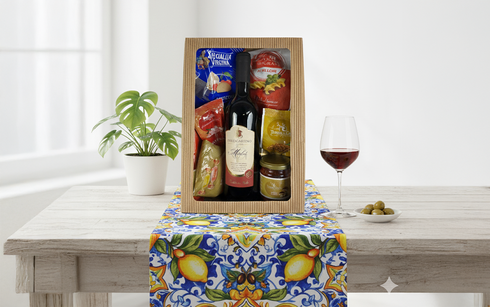 Tento dárkový box je dokonalým spojením pravých chutí Itálie – ideální pro všechny, kdo si chtějí dopřát autentický zážitek z italské kuchyně i sladkých specialit. Hlavní roli zde hraje lahvové červené víno Fabio Gartino Merlot, jehož plná, sametová chuť skvěle doplňuje vybrané delikatesy. Nechybí tradiční těstoviny Fusilloni z bronzové matrice od Loggia dei Grani a červená omáčka Pomodoro e Basilico z Tenuta del Cervo, které spolu vytvoří dokonalý základ pro domácí italskou večeři. Sladkou tečku zajistí piškotky Pasticcini od Specialità Virginia, čokoláda Sperlari Latte e Cacao a ovocné bonbony Le Gemme, které vynikají jemnou chutí a kvalitou. Tento dárkový balíček je ideálním způsobem, jak potěšit blízké, kolegy či obchodní partnery dárkem plným radosti, chutí a vůní slunné Itálie.