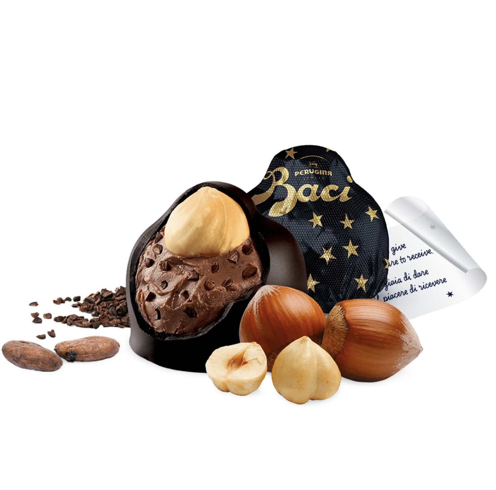 Čokoládové pralinky Baci Perugina Fondentissimo 70% kombinují tradiční italské řemeslo s výjimečnou chutí pro opravdové gurmány. Každá pralinka nabízí silný čokoládový zážitek s 70% hořkou čokoládou, jemnou oříškovou náplní a celým lískovým oříškem uvnitř. Balení o hmotnosti 1,5 kg (marsupio) je perfektní jak pro sdílení, tak pro dlouhodobé uchovávání čerstvosti. Ideální volba pro každou příležitost nebo jako dárek pro ty, kteří ocení intenzivní chuť a pravou čokoládovou kvalitu od značky Perugina.