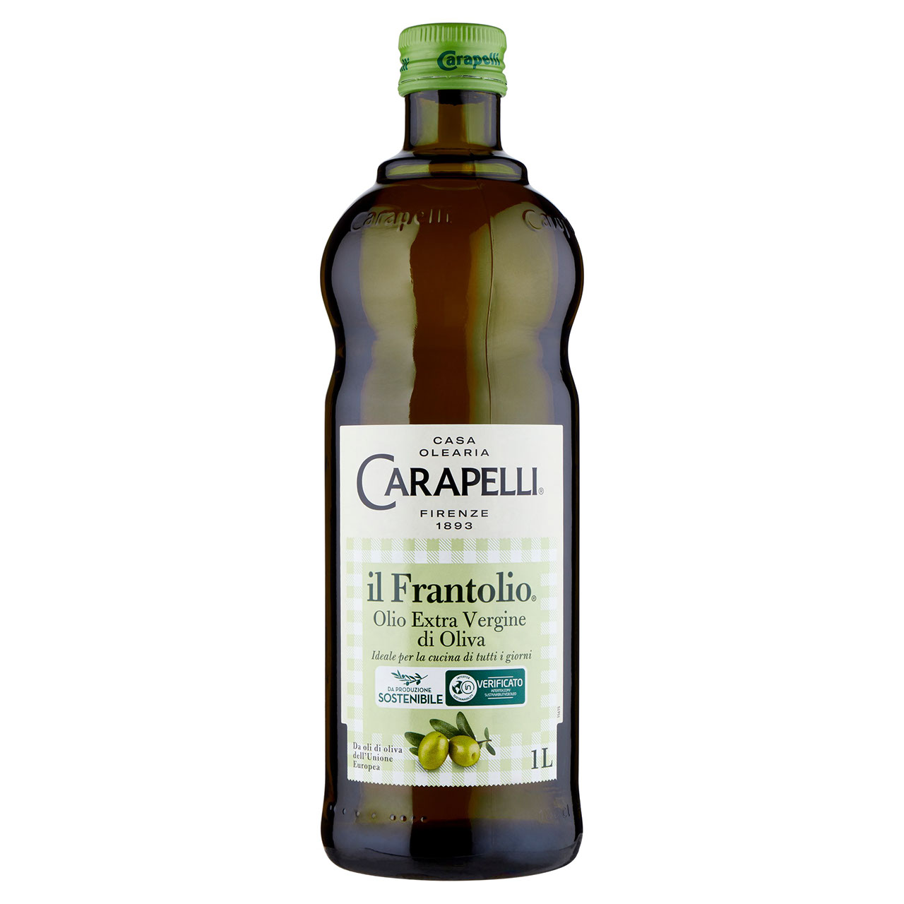 Olivový olej Carapelli Olio Extra Vergine d'oliva Il Frantolio reprezentující tradici značkového oleje mezi italskými spotřebiteli a zakoupený téměř 3 miliony rodin... Jedná se o velmi kvalitní olivový olej, navíc nyní s certifikací udržitelnosti výroby vydanou mezinárodní organizací Intertek inspirovaný směrnicemi cílů udržitelného rozvoje OSN, který zahrnuje všechny aspekty a aktéry výrobního řetězce pro udržitelný a hodnotný rozvoj.