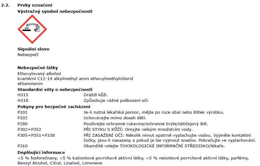 EUH208 - Obsahuje Protease. Může vyvolat alergickou reakci.