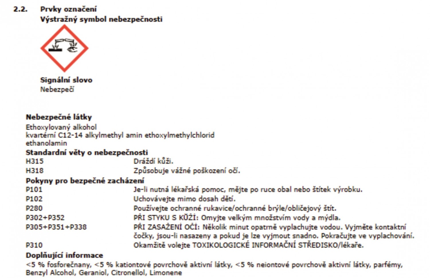 EUH208 - Obsahuje Protease. Může vyvolat alergickou reakci.
