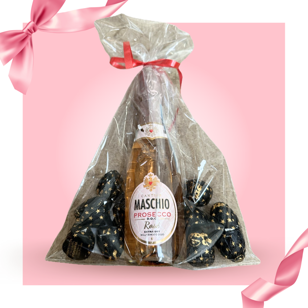 Dopřejte si romantický večer s tímto elegantním dárkovým balíčkem, který je ideální pro oslavu Valentýna! Jemné Prosecco Rosé a výběrové čokoládové pralinky se postarají o výjimečnou atmosféru plnou lásky a luxusu.