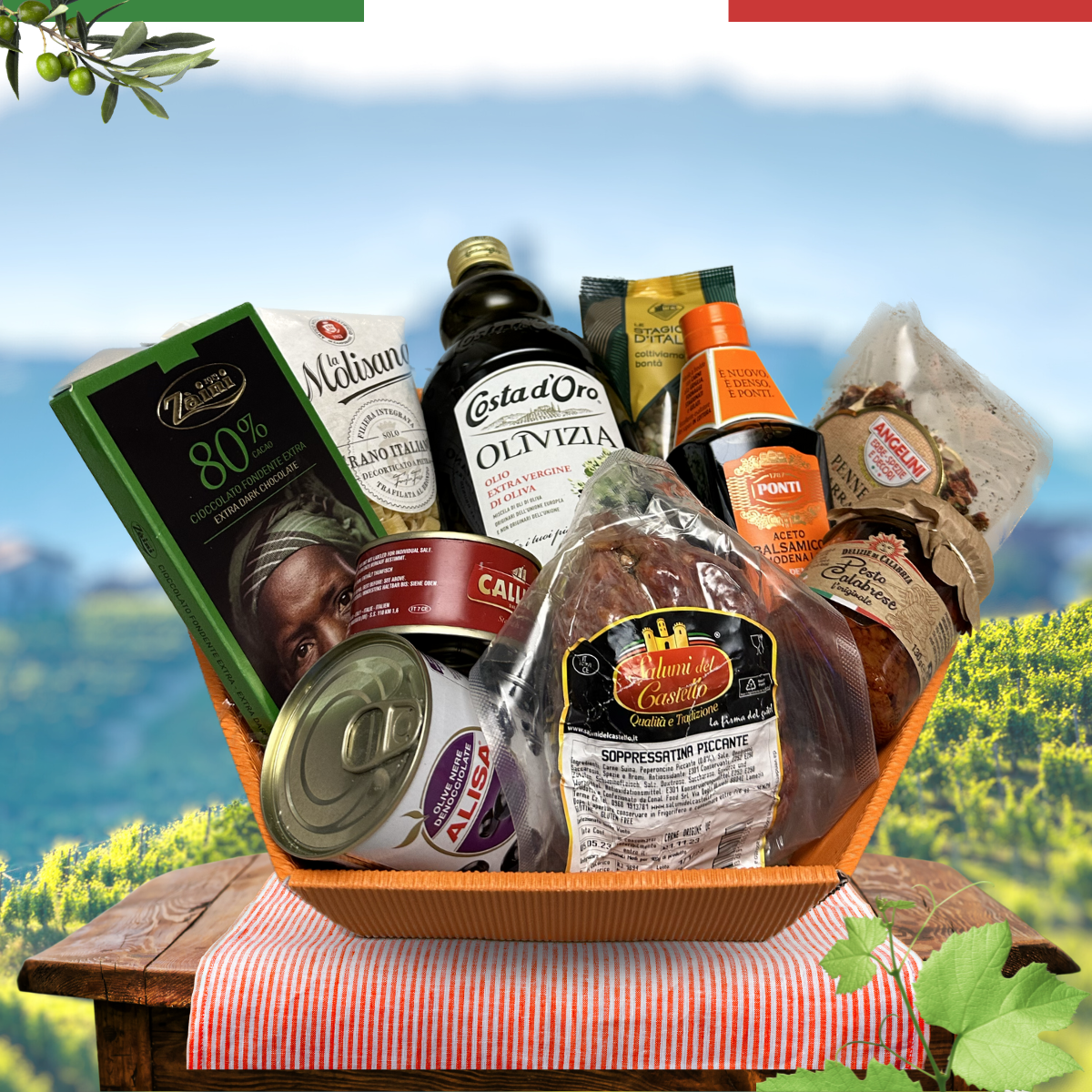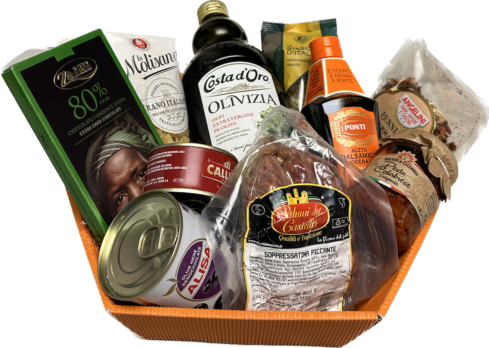 Dárkový koš PLINIUS je plný fantastických dobrot z Itálie, a to převážně z jižní slunné Kalábrie. Mezi jinými, v tomto koši naleznete černé olivy, vynikající konzervu tuňáka, balzamikový ocet , nebo také italský salám.