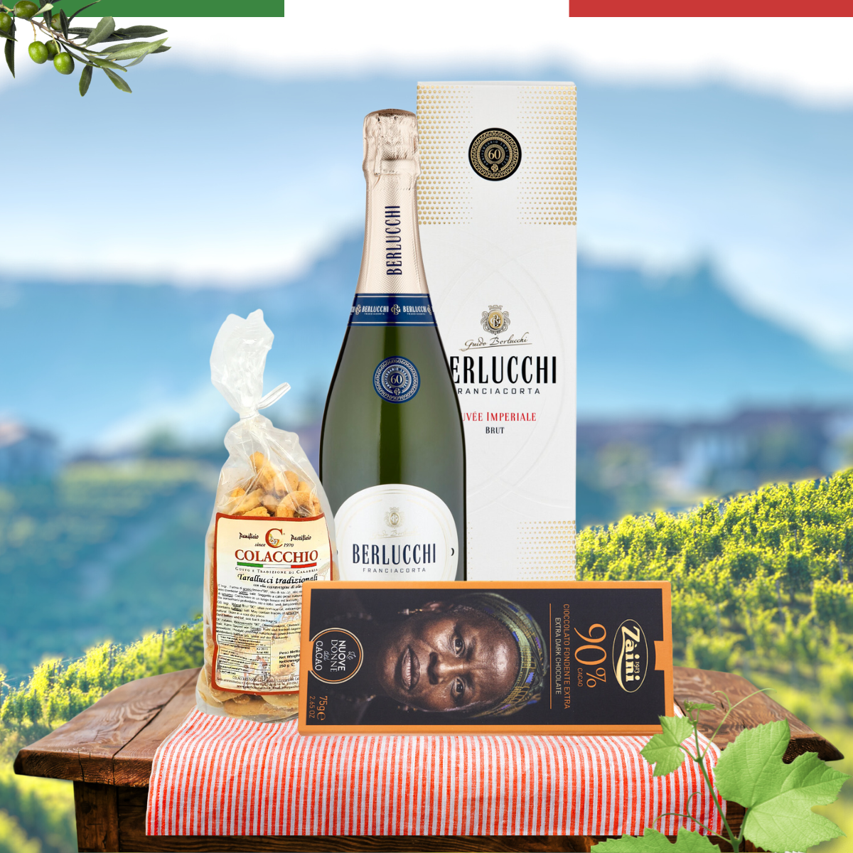 Dárkový set Berlucchi je plný fantastických dobrot z Itálie, a to převážně z jižní slunné Kalábrie. Naleznete v něm také vynikající šumivé víno Franciacorta Berlucchi Cuvée Imperiale DOCG Brut.