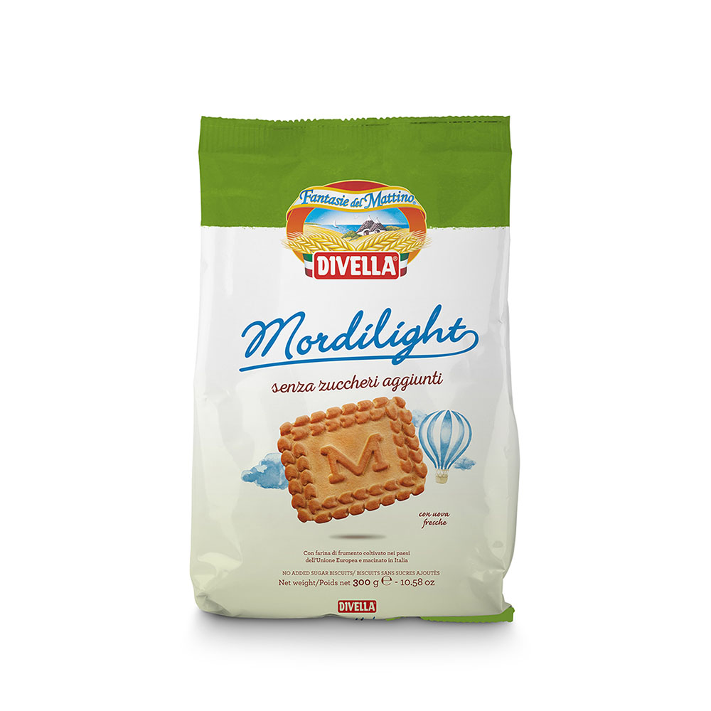 Sušenky Divella Mordilight Senza Zuccheri Aggiunti 300 g - to je chuť a lehkost bez přidaného cukru. Aniž by se zradila dobrota a sladkost klasického křehkého pečiva, tento výrobek neobsahuje přidaný cukr a má nízké procento tuku.