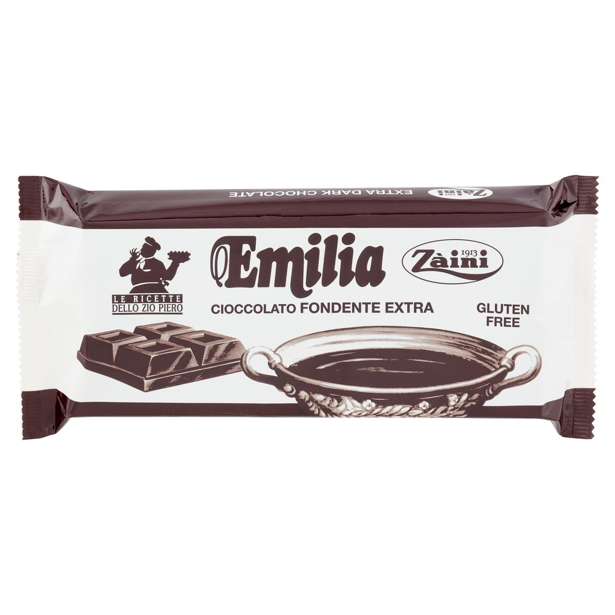 Extra hořká čokoláda Emilia Zaini Cioccolato Fondente extra je dokonalou rovnováhou těch nejkvalitnějších surovin, vytvořených před téměř 100 lety k výrobě těch nejlepších čokoládových dezertů.