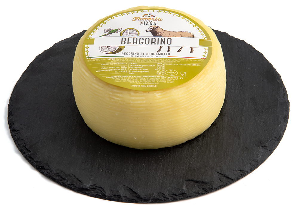 Ovčí sýr Fattoria della Piana Pecorino Bergorino je čistý ovčí sýr zpracovaný a zrající za použití bergamotu a jeho esence. Vůně bergamotu se mísí s chutí pecorina a vytváří jedinečnou chuť, která umocňuje znamenitost našeho území.