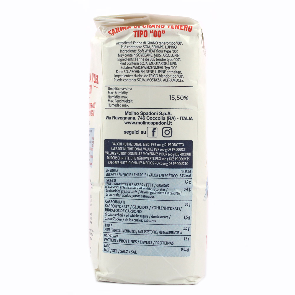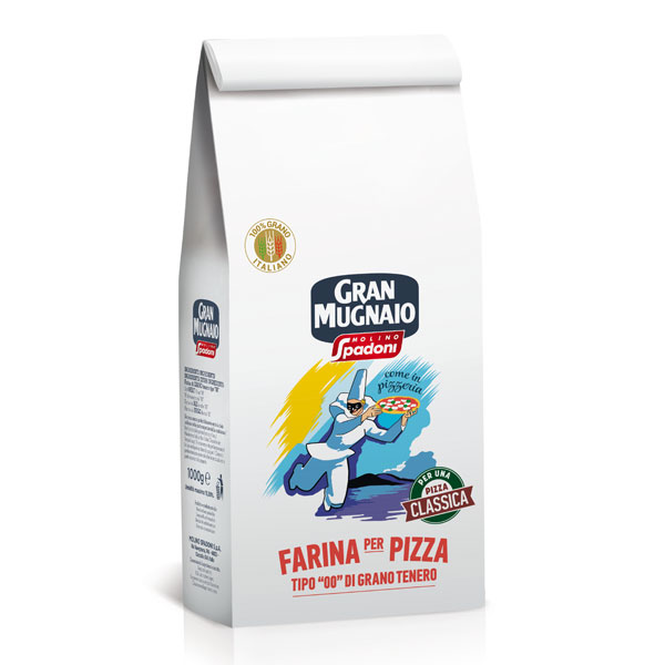 Použitá zrna jsou pečlivě vybírána a podrobena lehkému mletí, aby se získala mouka, která zajišťuje pružnost těsta a toleranci vůči kynutí. Mouka Gran Mugnaio „00“ na pizzu je perfektní pro zajištění toho, že při dlouhém kynutí drží pohromadě, a je nezbytná pro získání chutné a křupavé pizzy.