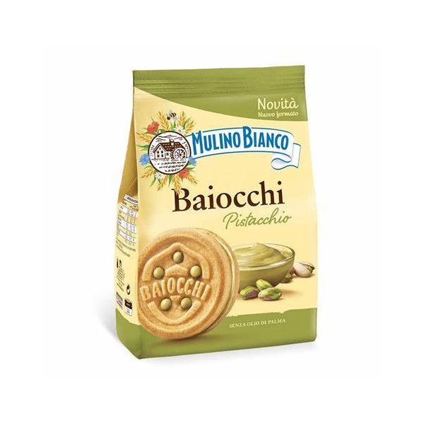 Mulino Bianco Baiocchi jsou neodolatelné sušenky plněné lahodným pistáciovým krémem, které spojují křupavost s jemnou, krémovou náplní. Tyto sušenky jsou ideální volbou pro milovníky sladkých pochoutek, kteří ocení autentickou italskou kvalitu a jedinečnou chuť pistácií. Perfektní ke kávě, čaji nebo jako sladká odměna kdykoliv během dne. Dopřejte si okamžiky radosti s Mulino Bianco Baiocchi, kde se tradice setkává s inovací.