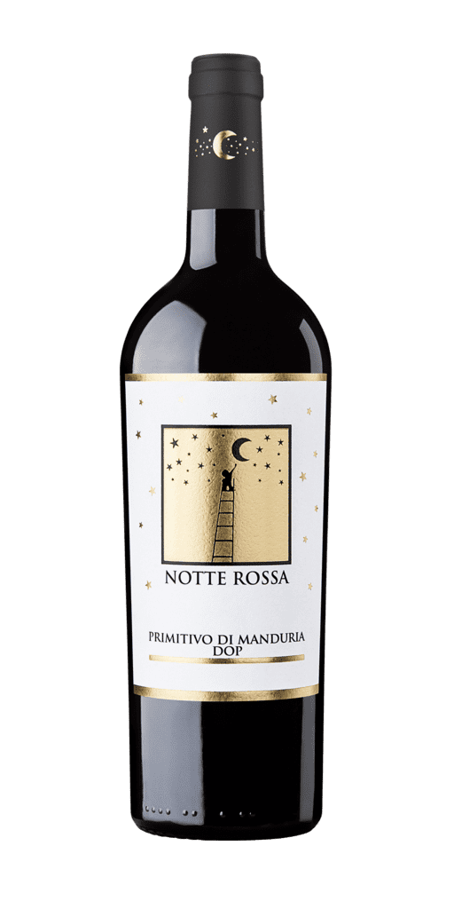 Červené víno Notte Rossa Primitivo di Manduria je ikonické, plné, jedno z nejreprezentativnějších v regionu.