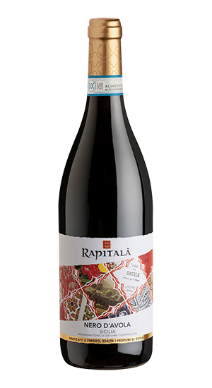Červené víno Rapitala Nero d'Avola Sicilia DOC je vyrobeno z jedné z nejtradičnějších sicilských odrůd s intenzivní barvou a silnou strukturou. Hrozny, sklizené v polovině září, jsou vinifikovány jako monovarietal, v malých nerezových tancích, se středně dlouhými, teplotně řízenými maceracemi.